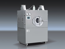 Cuando los núcleos del comprimido se van a revestir, hacen un movimiento continuo orbital complejo dentro del tambor giratorio cerrado bajo la acción de una placa de guía aerodinámica. Durante el movimiento, el medio de revestimiento realiza pulverizaciones automáticamente de acuerdo con el proceso tecnológico. Al mismo tiempo el aire caliente se suministra bajo una presión negativa. El aire caliente penetra a través de los niveles de núcleo del comprimido y se descarga desde la parte inferior de las capas. El medio de revestimiento pulverizado en la superficie de núcleos del comprimido se seca rápidamente y uniformemente formando una película de superficie sólida y lisa.